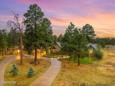 The electric gate opens. You take in the glorious ponderosa pines, the beautiful front yard, the circular driveway, the sprawling, welcoming single-level home, and the barn. The Alpacas come closer, curious. The mountains glow and shimmer as a stunning backdrop on one side, the national forest invites you on the other. As you breathe in and process this beauty, you know. You are home. Welcome. This is a unique opportunity to live your dream in a single-level home on almost 4 treed acres, backing national forest on 2 sides, with a separate guest house/apartment and a 6 stall barn with a workshop. The design of the home is fabulous. Family and friends will gather in the newly upgraded kitchen and dining area, or spill over into the greatroom. The wall of windows in the greatroom allows you to feel like you are surrounded by nature while relaxing inside. Behold the ponderosas, blue skies and the ever changing colors of the mountains in the near distance. The sunroom on the side of the kitchen is a perfect office or, why not? Use it as a sunroom. Do you need privacy? There is a bedroom and bathroom behind the kitchen, perfect as a guest suite, exercise area, or your office. The entry room is that highly desired second living area or play area. With a spacious primary bedroom and two additional bedrooms and bath, live and entertain with ease. Start every day peacefully waking to the mountain’s dazzling and subltly changing hues in the morning sunlight. You may never want to leave. But wait. There is a detached apartment above the garage! House your teenager, your guest or rent it out! Equestrian? You will adore the 6 stall steel barn in excellent condition that now includes a full workshop. Toys? When you see the three car garage and additional breezeway you will want to buy more – there is plenty of space to store them. The breezeway lends itself to many uses. Imagine! RV? Hook it up! (septic for RV is not permitted). Let’s walk the property. Breathe in the tranquility of the pines and enjoy the views of the mountains on your back deck. Listen to the soothing sounds of your water feature, the calming whispers of the wind in the trees and the birds chirping. Time to explore! Mount your horses, put on your hiking shoes or get your bike ready – lose yourself in the National forest from your back yard. You must spend time here to understand the peace, tranquility and opportunities offered by this unique home. Let us inpsire you. The home inspection has been completed. This home is in excellent condition. Owners are meticulous. Welcome.