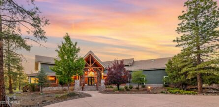 indoor/outdoor design; a 35-foot vaulted ceiling & picture windows allow you to experience natural beauty from every angle in every season. The spacious kitchen with breakfast area is upgraded with quartz counters & new appliances. Enjoy the tranquility and pampering pleasures of your own indoor spa room on the main level! Both the primary suite on the main level and upstairs guest bedroom have private balconies with views. The bar & large upstairs family room are a dream come true for spending time with family and entertaining friends. Play pool, cards, sit at the bar and relax as if you are in your own private lodge. The outdoor living areas must be experienced in person to be appreciated. Sit quietly or host a party of 50 on your back patio in the presence of fields, birds, ponderosa pines and Mount Humphreys. The freestanding water wall is a unique and beautiful backdrop. With six acres, you can walk and picnic in an array of glorious natural settings. A shared deep aquifer well, radiant heat, a 4 car tandem garage & additional RV garage with cleanout and hookups, EV charging and large fenced dog run make this home not only beautiful but also highly practical. Important Note: there is a 1700 sf +/- finished bonus room above the garage that is not included in the square footage of the listing! Use it as a shop, gym, art studio or extra living space. This spectacular home inspires endless possibilities in one of Northern Arizona’s most picturesque settings.