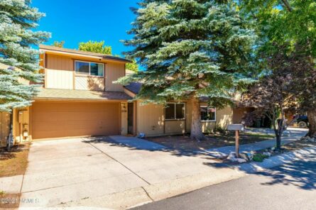 Welcome to this 1533 sf, 3 bedroom 2 bath townhome with a beautiful, private back yard surrounded by trees & a rare, double sized front yard. Tucked away in a quiet yet centrally located community, this townhome is the perfect space to call home: enjoy the greatroom with cathedral ceilings and fireplace, a kitchen with upgraded applicances & natural light, 3 bedrooms up, and a rarity for townhomes in Flagstaff – an attached 2 car garage. The back yard is a small slice of heaven – pavers, space to relax and play, fenced, lots of trees and yes, a garden! Look at the photos of the front yard to see the gorgeous tree and the amount of space you have! With a south facing front (great for winter), you don’t want to miss this welcoming, well cared for townhome in a peaceful, treed location.
