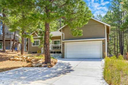 This home is the perfect combination of new and nature. Located on a quiet cul de sac close to Pumphouse Wash and so many trails, the lot backs a large expanse of beautiful ponderosa pines. Whether in your upgraded kitchen, on the couch or in your bedroom, look out the windows and see pine trees. The feel is private, quiet and peaceful. Built in 2017, this home is like new and in excellent condition. Enjoy the open floorplan, fenced back yard, central AC, heated garage with high ceilings (create a home gym), covered front porch and a dog bath in the laundry room! FULLY FURNISHED – TURNKEY. Operated as a successful short-term rental, financials are available. This is a truly special home.
