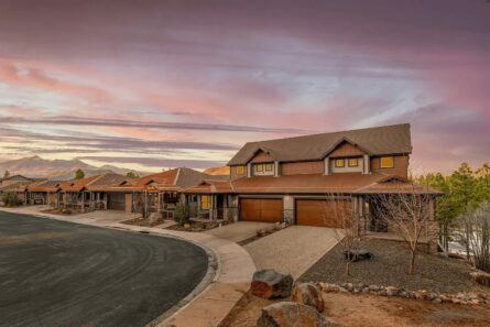 This home has an ELEVATOR! You envision sitting on one of your decks in awe of gorgeous mountain views, enjoying the sounds of rustling pines. You step out your door to a wooded trail that takes you on a short walk to downtown Flagstaff, or to the glorious beauty of Buffalo Park. You love the charm, openness, natural light and rich comfort of your luxurious, end unit, lock-and-leave home on a private cul de sac. Welcome to the luxury and convenience of Switzer Canyon Townhomes, the essence of ”Flagstaff Urban.” Custom built in 2017, it’s been lightly used and highly loved. Enjoy the open kitchen and greatroom with soaring ceilings, a wall of windows, a fireplace and stunning mountain views. Don’t want stairs? Ride the ELEVATOR to your private, spacious primary suite. The upstairs loft is a perfect office or sitting area! Below, family or guests enjoy a second ensuite bedroom, third bedroom and den. Fabulous for a second media room! Your front porch is surrounded by forest in a private cul de sac, an area protected by the HOA that will not be built. Heaven! With central AC, this home is perfect for all of Flagstaff’s stunning seasons. The original owners built a dog run and a space under the stairs that is a comfy, secure bed for your four-legged best friend. Get on the urban trail, walk or bike to town, enjoy the best of Flagstaff! The inspection has been completed and is available to buyers who have seen the home in person and are interested. It’s in fabulous condition!
