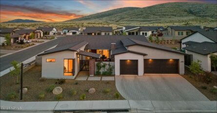 MOVE-IN-READY DREAM HOME: This rare home instantly creates a fabulous Arizona lifestyle. Totally complete with all the best upgrades, premium oversized corner lot & spectacular custom landscaping. Easy access to great trails & club amenities. Gourmet kitchen with elegant ceiling-height cabinets, quartz countertops & a velvety walnut island. Well-designed floor plan provides privacy to the primary suite & includes a den between the additional bedrooms, so everyone has their own space. BBQ beneath the pergola while enjoying sunset views of surrounding mountains. Unique sunken patio area with gas fireplace provides the perfect year-round gathering spot. Owned-solar panels, LEED design, and EV charger, for a green lifestyle. Close to YRMC hospital & downtown PV.