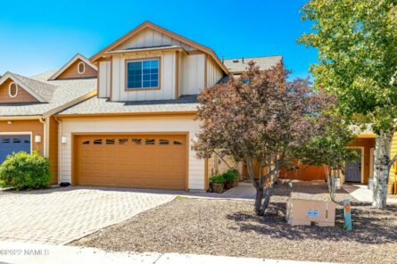 Fabulous 1,516 sf, 3 bedroom 2 .5 bathroom townhome with a spacious, fenced back yard in Bellemont, only steps away from National Forest. This is the largest floorplan available! On the lower level, enjoy the open floorplan, kitchen with breakfast bar, pantry and dining area – with beautiful natural light and privacy created by your fenced, treed yard. On the upper, find 3 large bedrooms and a laundry room for convenience. Central Air is a big plus for summer! The yard is a dream for play, relaxing and gardening. Minutes from Flagstaff, this small townhome community is a gem.